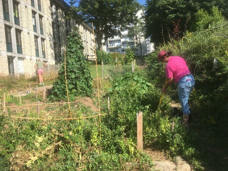 Mercredi 28 Aout c’était donc la reprise des permanences hebdomadaire avec la présence des ados du foyer de la Mosaïque toujours aussi passionnés et investit ( sans eux pas d’arrosage régulier en semaine). Et l’accueil de Cassandra nouvelle jardinière déjà passée à René LE BAS et bien déterminée à participer aux 2 jardins